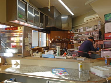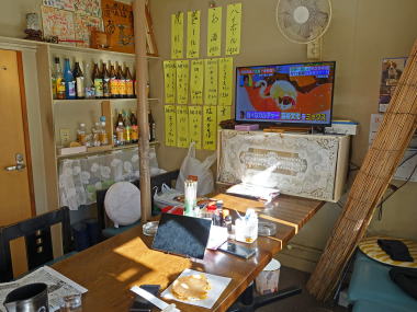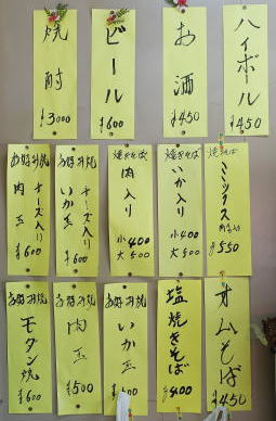 様子、店内は居酒屋の雰囲気で昼飲み客がいました。たませんと焼きそばを