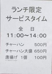 ランチタイムは並500円 大盛650円 雨の日は大盛500円 鶏の唐揚げ1コ 100円 ’25.11