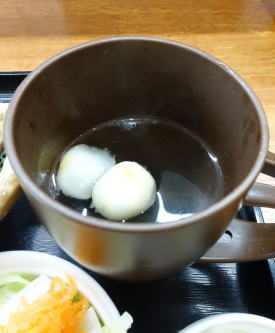 サイズはS.M.Lある こちらはMですがジジには多め スープと思ったら吸い物だった