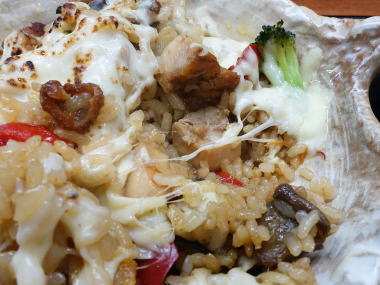 チーズをバーナーで炙った感じです。ご飯の味付けは私には濃い目でチーズと