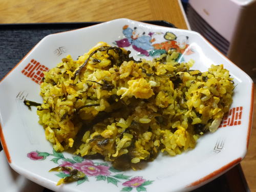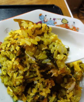 夫婦で厨房もやっている様ですぐに配膳された。高菜炒飯はスパイスが効いて