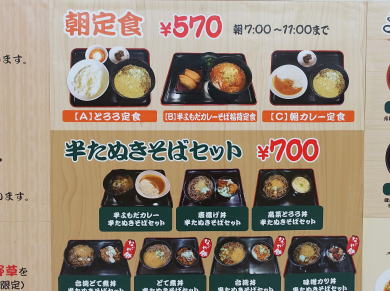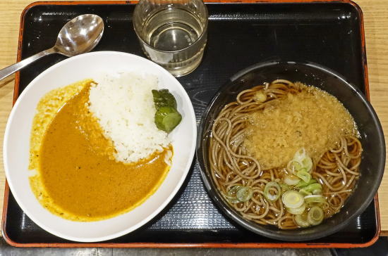寄った。朝定食から(C)朝カレー朝食を選び蕎麦は大盛(無料)にした。