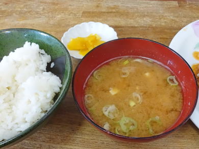 ヒレカツ2枚、ご飯、味噌汁、漬物」を選んだ。大きなクリームコロッケは箸で