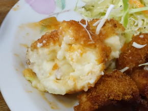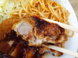 持ち上げると崩れる柔らかさ、滑らかで美味しい。ヒレカツのソースが懐かしい。