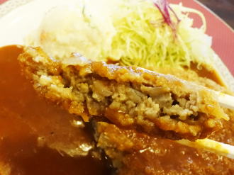 定食」を選んだ。すぐに着膳、スパも速い!メンチカツは大きく柔らか