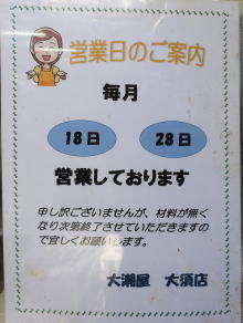 毎月18.28日のみの営業です。お好み焼き・豚玉のみ販売。大須観音の