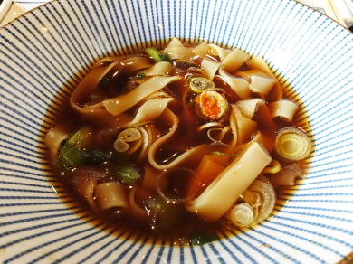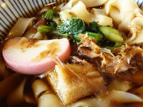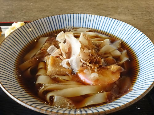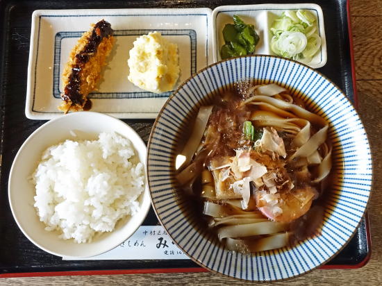 今日も「きしめん定食」を選んだ。きしめんはやや幅広、薄目で