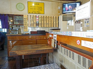 昭和の良き時代の雰囲気が残る店内。凝った店内で天井は煤竹かも 折角だから戸を和風に代えて