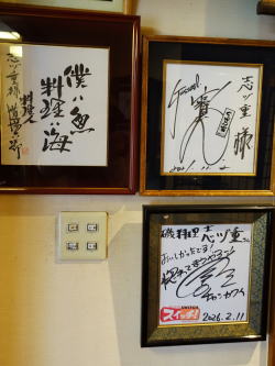 デザート三品からバニラアイスを選んだ 色紙 左は道場六三郎さん