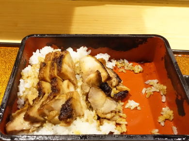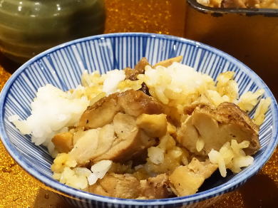 よくある事。最初は鳥ご飯、鶏は炭火香り、甘口のタレも合っているが
