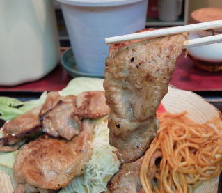 本日のランチは「豚ロース肉の生姜焼」肉の量が多いので