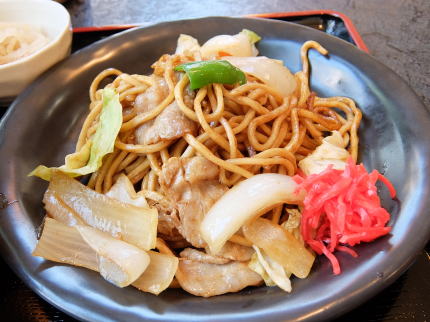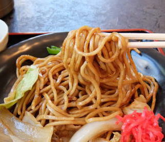 12時頃には一気に客が来るのかは配膳の女性も多い。焼きそばは、太い