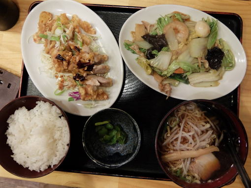 八宝菜、油淋鶏、醤油ラーメン、ホットコーヒーを選んだ。油淋鶏は