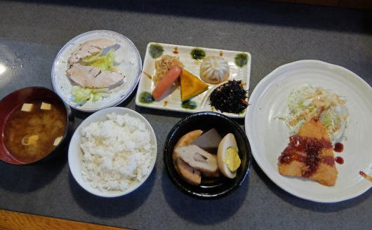 ランチを選んでいて私もそうした。家庭料理風の内容と味付けで