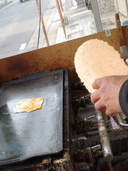 手際よく焼かれ渡された「たこせん」はアツアツで体が温まる 250円 ’26.03