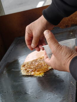 ソース掛け 天カス等を振り掛け