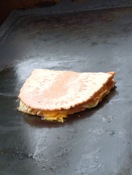 客もいました。たこせんもあるが王道のたませんにした。大将に無理を言って 左にテーブル、椅子あり