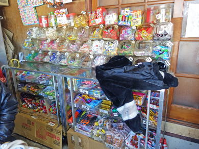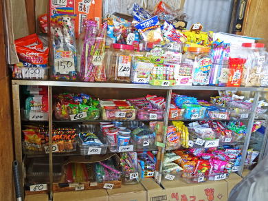 食べる高齢者と駄菓子を求める小学生で狭い店内は混雑。たませんを