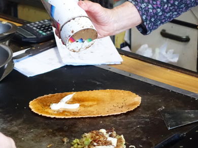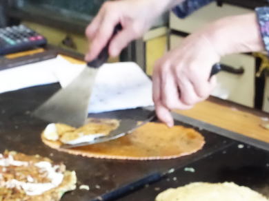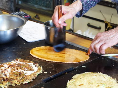 昔懐かしい店で高齢女性が一人できりもり。土曜日の午後、お好み焼きを