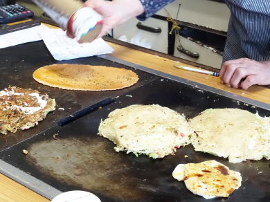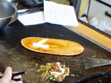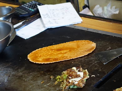 頼んだらお好み焼きの脇ですぐに始まった。至ってベーシックな仕上がりで.