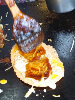 捌きに相変わらずカメラが付いて行けない。渡され食べ出したら、ソースや