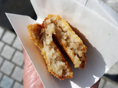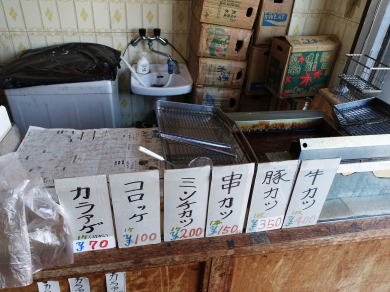 精肉店があった。店主は意外と若く、時間外だったがコロッケ1個揚げて