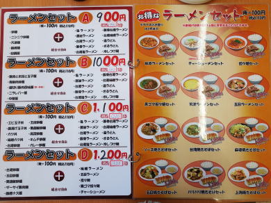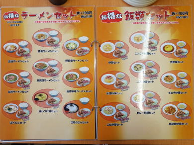メニューはラーメンと揚げ物、餃子、チャーハン、キムチ
