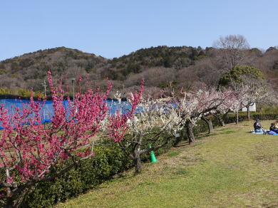 ここは枝垂れ桜がメインで梅は少ないが梅林は古木が多く趣がある