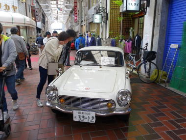 国産オールドカーの各車展示 小柳町 人通りが一気に無くなる